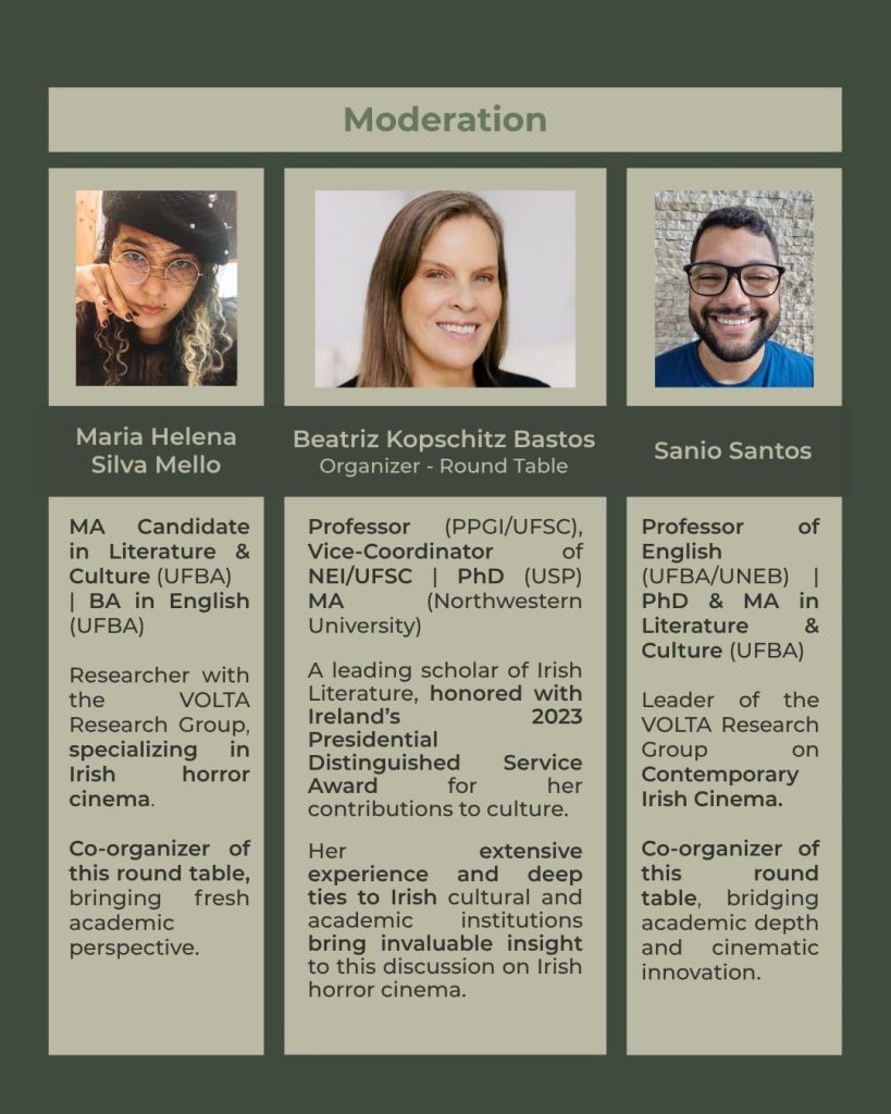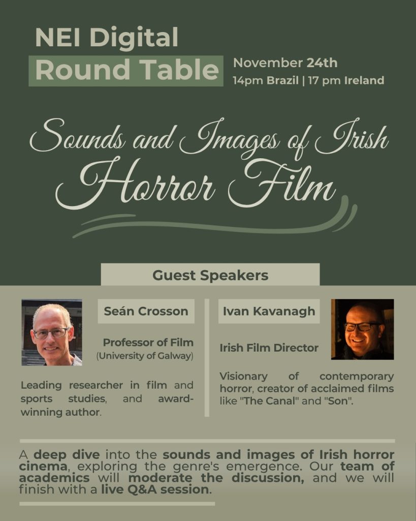 Online Round Tables Round Table X (24•11•25) Sounds and Images of Irish Horror Film Round Table IX (12•03•24) Shakespeare in Brazil and Ireland: Cultural and Political Perspectives Round Table VIII (29•05•23) The Theatre and Cinema of Martin McDonagh Round Table (08•06•22) Violent Cinemas in Northern Ireland and Brazil Round Table VII (23•02•22) Contemporary Joyces Special Round Table (27•10•21) The theatre of Tom Murphy Round Table VI (16•09•21) Contemporary Beckett Round Table V (29•07•21) Contemporary Irish film studies Round Table IV (28•04•21) Creative writing: towards a pedagogy Round Table III (31•03•21) Irish literature and ecocentrism Round Table II (28•10•20) Shakespeare in Ireland and Brazil: translation and performance Round Table I (14•10•20) How the story travels: the contemporary Irish short story